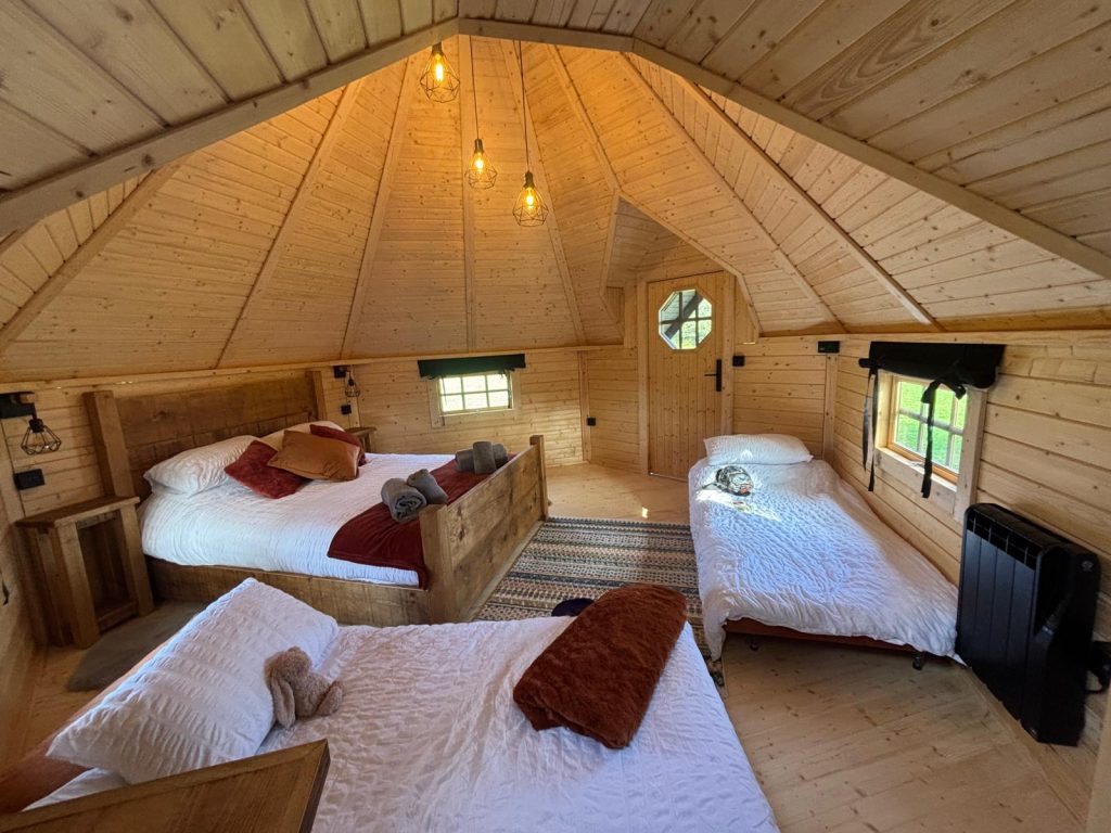 We have three luxury cabins to choose from all with a slight differences. Our Top cabin can sleep up to 4 guests with a warm green theme. With a large king size bed and 2 single sofa beds